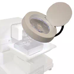 A magnifying glass for general global slices offering approximately 1.5x magnification. Integral cold light powered directly via the Model 5100mz Vibrating Microtome.