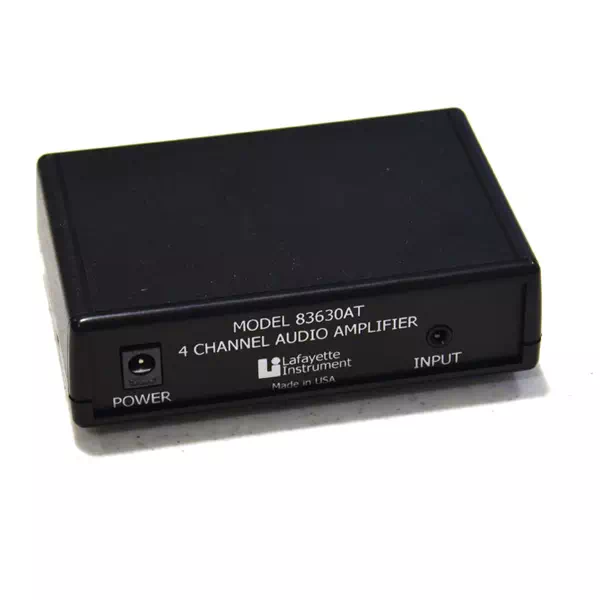 A four channel audio amplifier designed specifically for Actimetrics Freeze Frame and other operant conditioning systems.