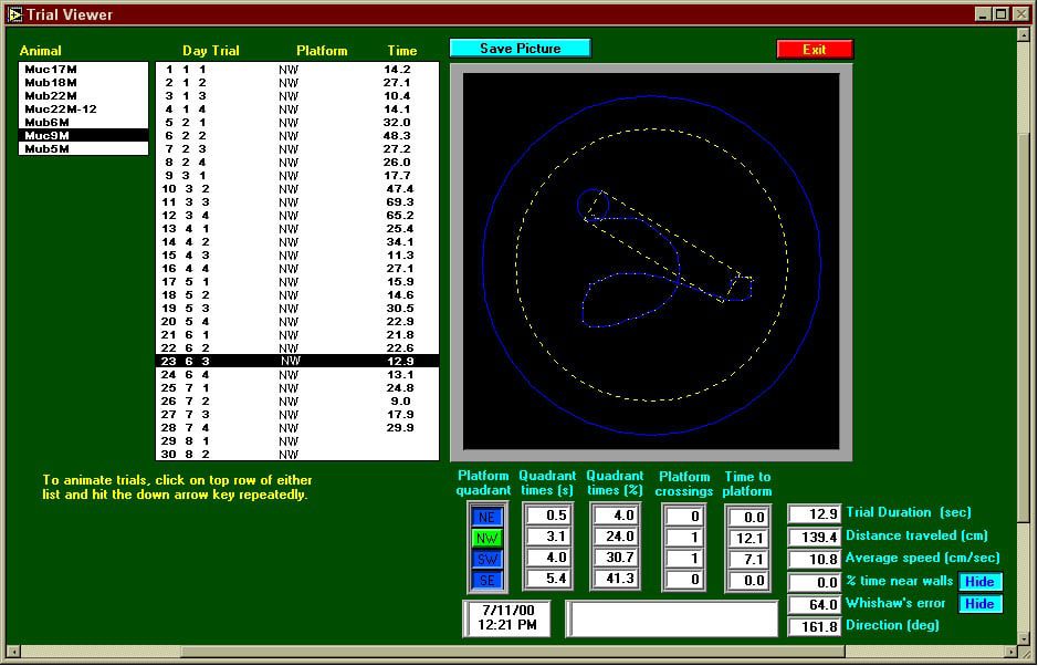 Developed in collaboration with Dr. Richard Morris, WaterMaze automates acquisition and analysis for the classic Morris Water Maze task. The system supports multiple animals, platforms, and experimental configurations, delivering reproducible data on learning and spatial memory performance with minimal manual input.