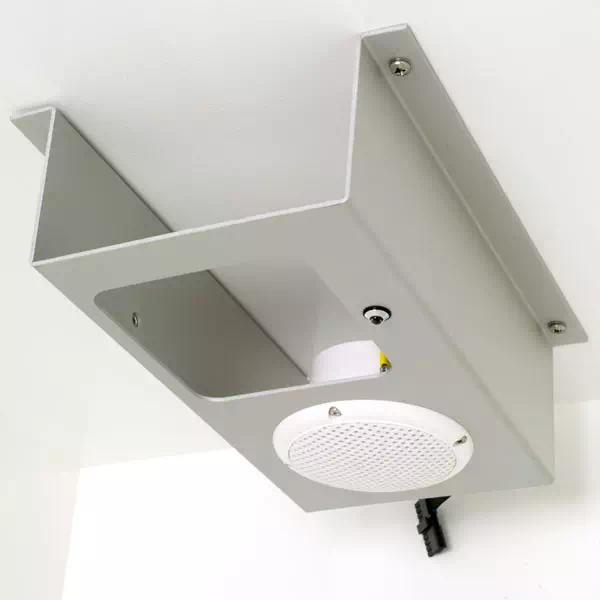 This provides a simple white LED houselight and a 3 inch (8cm) diameter speaker on a ceiling-mounted bracket.