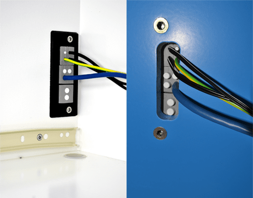 All cables are installed in trunking and a top shelf includes a central power distribution point and earth bonding. If taller cabinets are required for special designs, or if space is required between the upper and lower cabinets, a further wall-fixture option is also available.