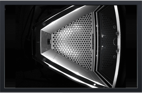 White LED House Light and Speaker: The LED provides a more concentrated area of illumination than a standard tungsten bulb and has a nanosecond illumination time.