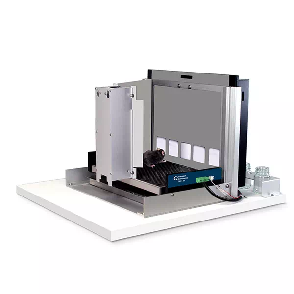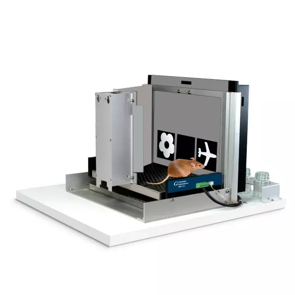 First developed at Cambridge University, Bussey-Saksida Rodent Touch Screen Chambers are now used by +300 research groups in over 26 countries. The Bussey-Saksida Chamber has always featured a unique trapezoidal wall shape in order to focus the animal’s attention and facilitates the efficient and high-throughput cognitive evaluation of rodents. The chamber is easily reconfigured to a modular square arena with panels, levers, lights, and a range of other operators to accommodate any task like an operant chamber equipped with a traditional lever or nose-poke.